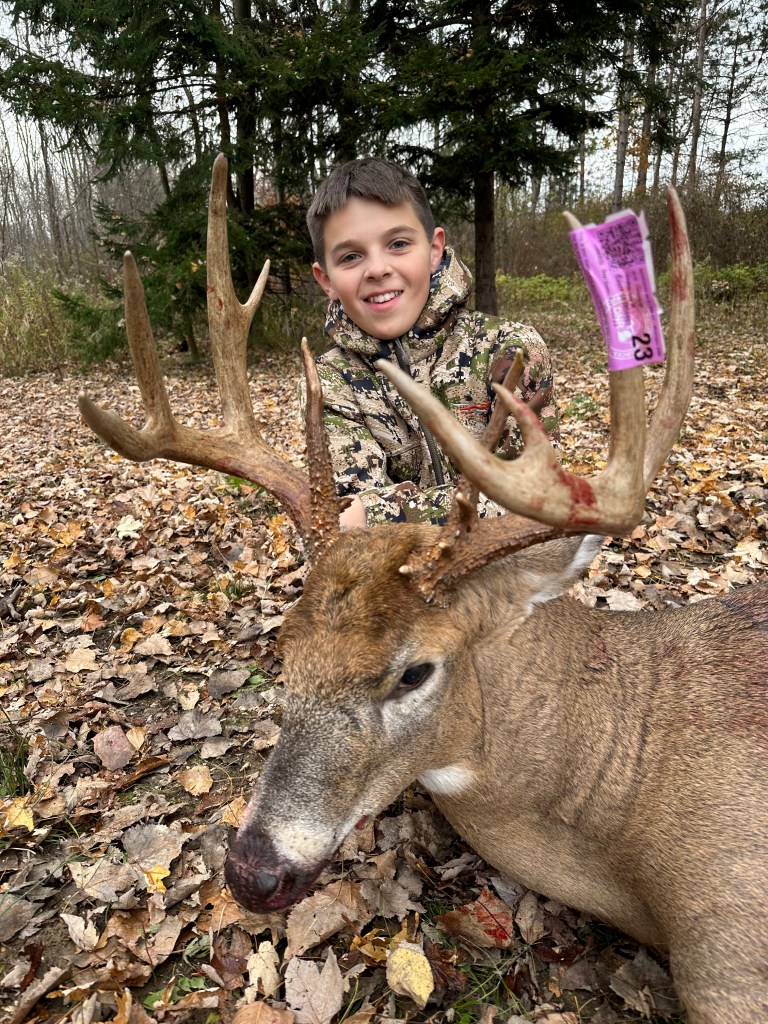 Growing up in rural Michigan, Chase has been exposed to hunting from the very start. If you have ever been lucky enough to drive through the “thumb” of Michigan in November you have probably witnessed the popularity of opening day with it’s hunters’ orange, bucks tied to the tops of cars, white-tails hanging up at nearly every house, and the numerous venison-processing operations in the area. Hunting is prevalent to say the least. So it was quite natural for Chase, at the age of 6, to harvest an 8-point on opening day with his dad.